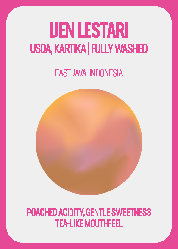 We selected this lot simply for its clear display of how clean Indonesian coffees can be. Despite the numerous awards won by the process-driven coffees, the fully washed lot was the coffee from Ijen Lestari that won us over with its poached acidity & gentle sweetness.